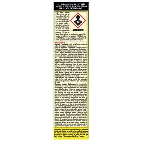 Acto pate rats souris 150g de la marque ACTO. Contre les rats noirs, rats d’Ă©gouts et souris. Appât sous forme de pâte molle huilĂ©e imprĂ©gnĂ©e de substances alimentaires très attirantes. Contient un puissant anticoagulant et un amĂ©risant.