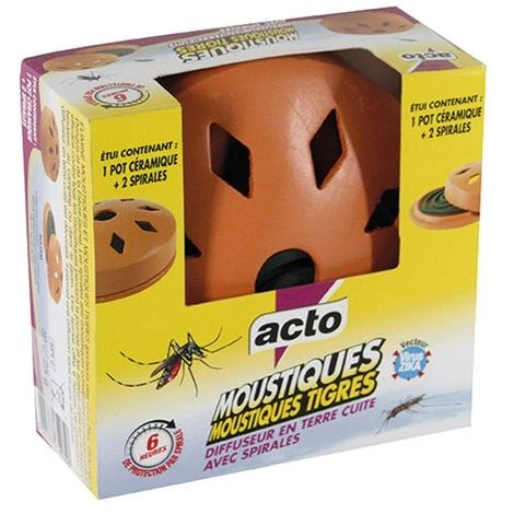 Le diffuseur en terre cuite avec spirales – anti-moustiques de la marque ACTO Ă©limine rapidement et efficacement les moustiques et moustiques tigres et permet de lutter contre le virus Zika. Chaque spirale est efficace pendant 6 heures.