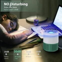 Silencieux et SimpleLe lampe moustique fonctionne tant qu’il est sous tension. Pas de mode de contrle complexe pour perdre du temps, le travail de capture s’excute automatiquement. Le lampe moustique silencieux sous 30db pendant la course, pas de son gnant. Pour ceux qui ont besoin de calme pour dormir ou ceux qui ont des problmes de sommeil, le piege a moustique est capable de leur fournir une nuit calme et sans moustiques .