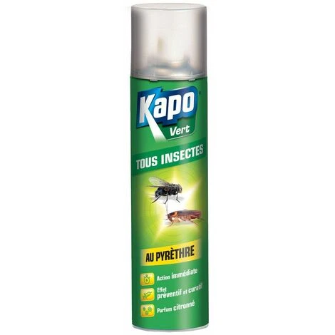 A base de pyrèthre, effet curatif et préventif. action immédiatement sur les insectes volants et rampants, élimine à 100% en 15 minutes. le produit reste efficace 2 mois sur les insectes rampants.