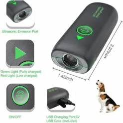 ăConception portable Anti Aboiementsă Ce dispositif de contrĂŽle des aboiements pour chiens est lĂ©ger et s’adapte parfaitement Ă votre poche, adaptĂ© Ă une utilisation intĂ©rieure et extĂ©rieure. Avec une dragonne, il a Ă©tĂ© conçu pour ĂȘtre pratique Ă transporter avec vous. Appuyez sur le bouton de ce dispositif de contrĂŽle de l’Ă©corce, il Ă©mettra un son ultrasonique et pendant ce temps, le voyant vert indiquera que l’appareil fonctionne, le voyant rouge indique que l’appareil doit ĂȘtre chargĂ©.