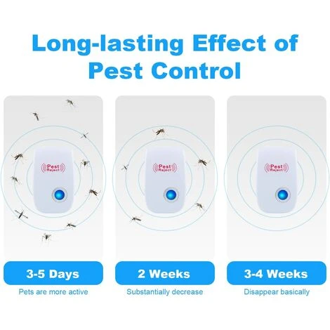 Plus avancé : la puce améliorée aide à produire des ondes ultrasonores plus fortes qui peuvent influencer le cerveau des insectes et des rongeurs, les repousser loin de votre maison. Le répulsif antiparasitaire peut contrôler les souris, les rongeurs, les moustiques, les fourmis, les araignées, les cafards, les rats, etc.
