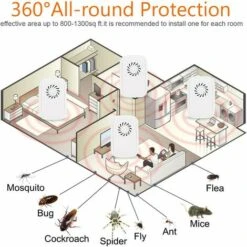 - 2020 Dernière technologie ultrasonique: – Avec une conception Ă double puce intelligente, le rĂ©pulsif d’insectes Ă ultrasons stimule le nerf auditif avec des ultrasons dans la gamme de frĂ©quences de 20 kHz Ă 65 kHz et dĂ©truit le système central olfactif et nerveux des ravageurs et des rongeurs. Ce type d’Ă©chographie peut rendre les rats, araignĂ©es, mouches, puces, fourmis et autres types de rongeurs et d’insectes très inconfortables, les chassant de nos maisons et de nos habitats.
