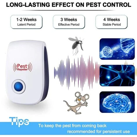 Super silencieux et efficace repulsif moustique: Le rĂ©pulsif ultrasonique marche avec des ondes ultrasonores Ă faible frĂ©quence, il vous permet donc de lutter contre les parasites de manière totalement silencieuse et ne peut pas vous dĂ©ranger, vous et vos animaux de compagnie. Veuillez prendre note qu’il nĂ©cessite un procĂ©dĂ©. Selon l’environnement, le temps de rĂ©ponse varie, habituellement de 2 Ă 6 semaines, nous sommes sincèrement lĂ pour vous aider Ă Ă©loigner les nuisibles.