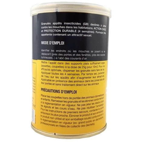 La mouche va consommer des granulés puis va mourir quelques heures après : action foudroyante.