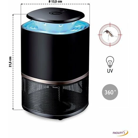 - La lumière UV attire les moustiques proches de la grille supĂ©rieure, puis l’hĂ©lice situĂ©e sous la grille aspire les insectes Ă l’intĂ©rieur qui ne peuvent pas s’Ă©chapper.