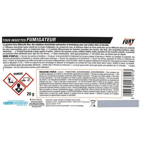 Le fumigateur de la marque FURY est spécialement conçu pour combattre efficacement tous les insectes rampants et volants.