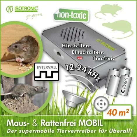 Protection fiable contre les rongeurs nuisisbles !Ce moyen de dissuasion pratique et sans danger pour les animaux aide Ă Ă©loigner les nuisibles indĂ©sirables de votre maison ou de votre cour de ferme. L’appareil utilise des tonalitĂ©s Ă ultra-haute frĂ©quence pour Ă©loigner les nuisibles avant qu’ils n’entrent pas dans votre maison, votre jardin ou vos unitĂ©s de stockage. La minuterie intĂ©grĂ©e modifie la frĂ©quence de lecture Ă des intervalles alĂ©atoires (+/- 20%), ce qui empĂŞche les souris et les rats de s’habituer au son. Le fonctionnement continu est d’au moins 6 mois selon l’Ă©tat de la batterie. Innovant, mobile, très efficace Simple Ă installer Pas de frais de montage onĂ©reux Aucune connexion Ă©lectrique n’est nĂ©cessaire DĂ©marrage immĂ©diat Aucun branchement Ă©lectrique et aucune installation n’est nĂ©cessaire Indication par LED La livraison comprend le matĂ©riel de montage ! Note : Les chiens, les chats et les oiseaux n’en souffrent pasSurface utile : env. 40 m²FrĂ©quence : 12 – 24 KHz 78 db niveau sonore FrĂ©quence de sortie : cycliqueDimensions : 13,5 x 7,5 x 3,0 cm4 x piles Varta