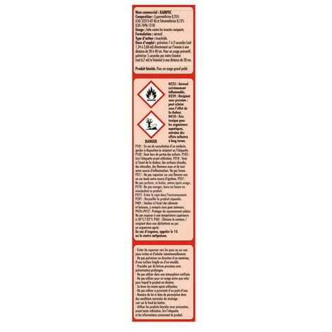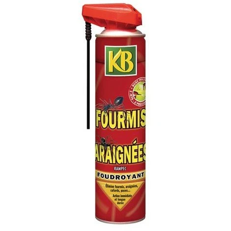L’aĂ©rosol anti-fourmis et anti-araignĂ©es de la marque KB est un puissant insecticide facile Ă appliquer, mĂŞme dans les recoins grâce Ă sa nouvelle buse prĂ©cise. DĂ©barassez vous dĂ©finitivement des fourmis, des araignĂ©es et des autres insectes rampants. Ne pas laisser Ă la portĂ©e des enfants.