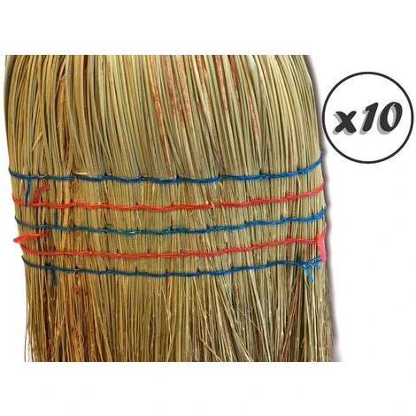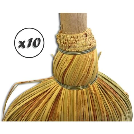Lot de 10 balais paille de riz traditionnel | 5 fils manchĂ© largeur 35 cm | Manche bois 150 cm | Balai pour mĂ©nage extĂ©rieur, cave ou garage | Kibros 2840×10