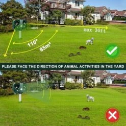 - ?DĂ©tecteur de mouvement? : design double haut-parleur avec un degrĂ© Ă©largi pour l’Ă©mission des ondes sonores, couverture acoustique jusqu’Ă 5000 sq.ft ; l’angle droit et gauche du capteur infrarouge est de 110 degrĂ©s, l’angle de haut et de descente est de 55 degrĂ©s, tant que les animaux sont proches de moins de 30 pieds de rĂ©pulsif ultrasons seront activĂ©s par le dĂ©tecteur de mouvement.