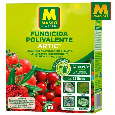 Fongicide polyvalent systĂ©mique 5ml. prĂ©vient le dĂ©veloppement des maladies des plantes ornementales, horticoles et fruitières et arrĂŞte l’infection pendant la pĂ©riode d’incubation. (action curative) 231560 massĂł
