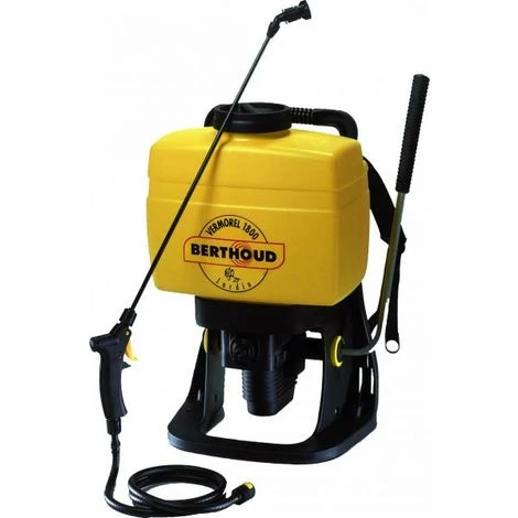 PulvĂ©risateur Ă dos Vermorel 1800 BERTHOUD  Le pulvĂ©risateur Ă dos Vermorel 1800 Ă une capacitĂ© de 16 litres. C’est le plus perfectionnĂ© du marchĂ©, essentiellement Ă©tudiĂ© et conçu pour des utilisateurs rĂ©guliers avec des grands jardins, vergers, arboriculture, etc … CaractĂ©ristiques produit PulvĂ©risateur Ă dos Vermorel 1800 BERTHOUD :   RĂ©servoir du pulvĂ©risateur Ă dos Vermorel 1800 BERTHOUD: CapacitĂ© 16 L avec niveau de liquide visible du pulvĂ©risateur Ă dos Vermorel 1800 Berthoud Armature dorsale ergonomique Ă©pousant parfaitement la forme du dos Double bretelle de portage rĂ©glable en longueur pulvĂ©risateur Ă dos Vermorel 1800 Berthoud Levier de pompage rĂ©versible gauche/droite et Ă 2 positions rangement (position verticale) et travail (position inclinĂ©e) en dĂ©montant et remontant le levier.   Pompe Ă membrane et Ă piston curviligne « hautes performances » (douceur de manipulation et faible rythme de pompage) PoignĂ©e de lance professionnelle de type « PROFILE » (confort et prĂ©cision de visĂ©e) Tube de lance composite Ă haute rĂ©sistance mĂ©canique et chimique, elle mesure 60 cm de longueur, la lance possède 30 cm de jet donc elle peut atteindre une hauteur de 0.90 cm. Pour atteindre une hauteur plus longue, il existe des lances de 2,40 m et 3,60 m compatibles avec le pulvĂ©risateur Vermorel 1800, la rĂ©fĂ©rence de la lance de 2,40 m est 280326, la rĂ©fĂ©rence de la lance de 3,60 m est 282447. Vous pourrez les trouver dans la catĂ©gorie produits complĂ©mentaires. Porte-buse universel rĂ©glable du pulvĂ©risateur Ă dos Vermorel 1800 BERTHOUD LivrĂ© avec buse Ă turbulence et pastille 15/10e pour jet brouillard PulvĂ©risateur Ă dos Vermorel 1800 Berthoud Garantie : 5 ans.  Produits complĂ©mentaires du pulvĂ©risateur Ă dos Vermorel 1800 Berthoud: Venez retrouver tout les produits Berthoud dans le rayon: Maison et jardin, vous y trouverez un large choix de produits pour entretenir votre jardin.Pour toutes questions n’hĂ©sitez pas Ă nous contacter par tĂ©lĂ©phone ou email et notre Ă©quipe se chargera de vous rĂ©pondre. Â