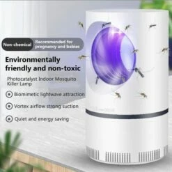 EFFICACE LAMPE ANTI MOUSTIQUE: Lampe anti moustique intérieur utiliser 365 Nm-400Nm longueurs d’onde UV ampoule émettant de la lumière, leurres moustique dans. Le ventilateur agite l’air environnant pour former un vortex, il sucera fortement les moustiques dans le piège à moustiques du fond. Et le moustique sera enfoncé par le cyclone dans le fond du disque du moustique jusqu’à ce qu’il meure de déshydratation et d’air sec