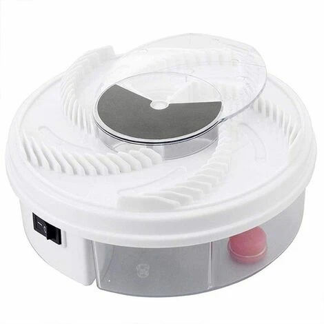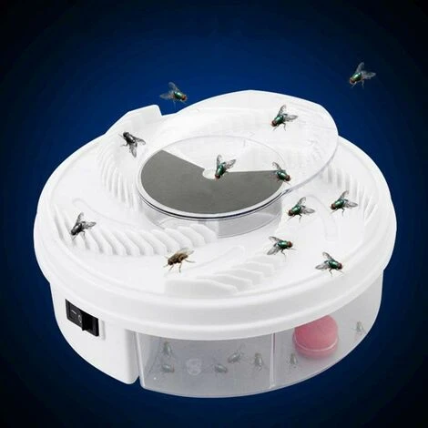 La mouche est attirĂ©e par l’appât et envoyez dans le rĂ©servoir par le plateau tournant. Elle est ainsi prisonnière.