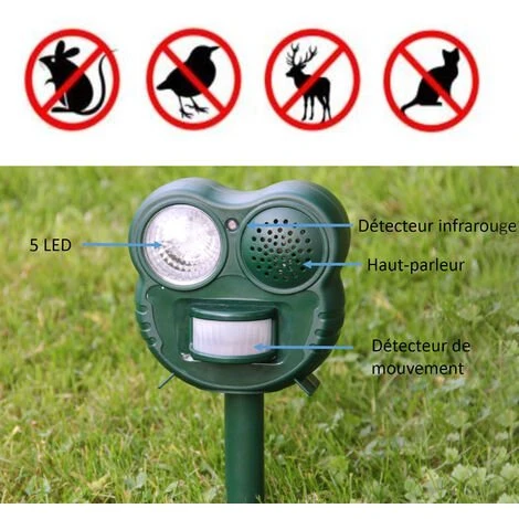 ChasseNuisibles – RĂ©pulsif Chien, Chat, Oiseau – Flash 5 LED -DĂ©tecteur de Mouvements